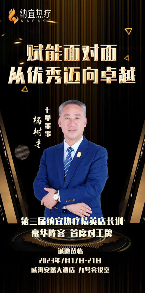 更有市场领导人杨树才老师亲临现场,带你掌握纳宜热疗运作密码,助力安然事业的腾飞!