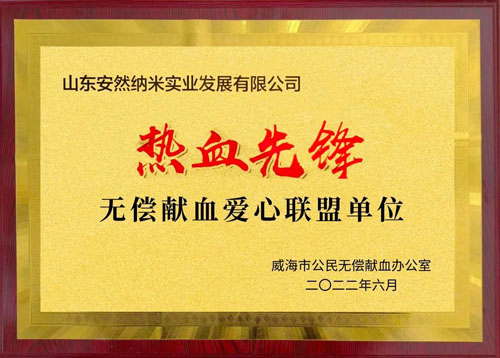 安然公司“爱心血库行动”深受认可,威海市中心血站为安然公司赠予感谢状,并授予了热血先锋——无偿献血爱心联盟单位称号。