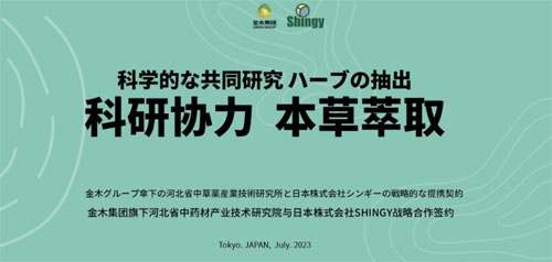 日本东京时间2023年7月10日上午10点,金木集团河北省中药材产业技术研究院与日本株式会社SHINGY宣布,签署以"科研协力 本草萃取"为主题重要的战略合作协议,双方达成共同推动汉方本草萃取研发科技以及生产技术等领域的共同合作发展目标。