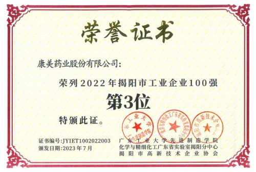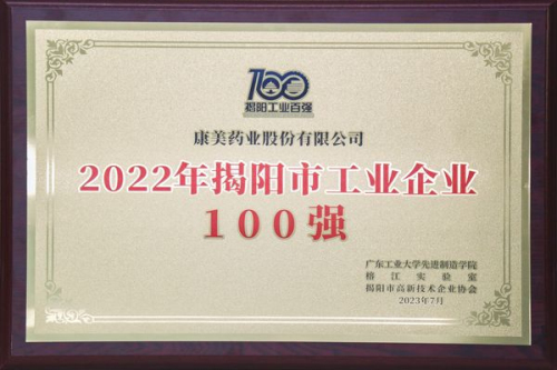 为深入贯彻落实国家、广东省和揭阳市关于“制造业当家”“高质量发展”的决策部署,准确把握新阶段、新理念,7月12日,由揭阳市工信局指导、广东工业大学先进制造学院、榕江实验室、揭阳市高新技术企业协会联合主办的“揭阳市工业企业100强发布活动”在揭阳举行。康美药业凭借优异的市场表现和强劲的综合实力,上榜揭阳市工业企业100强,荣列第3位!