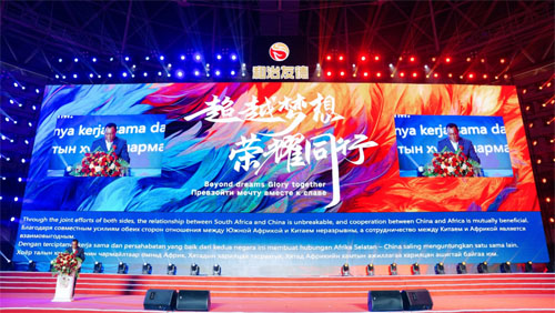 2023年7月16日,“超越梦想,荣耀同行——和治友德启航中国七周年庆典”在天津市宝坻体育馆隆重举行。南非共和国驻华大使谢胜文出席本次活动并致辞。