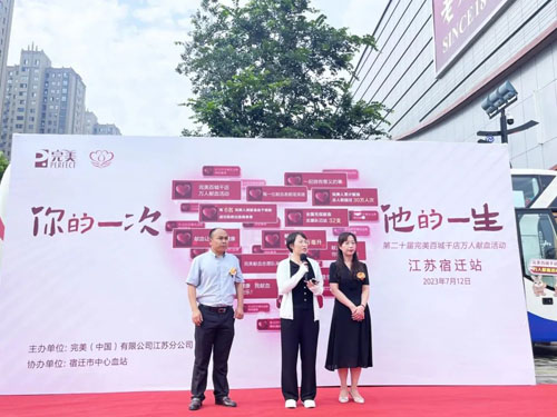 7月12日,完美江苏分公司与宿迁市血液中心共同举办的第二十届“完美百城千店万人献血活动” 宿迁站活动温暖启动,以实际行动支持无偿献血公益事业,此次活动吸引了江苏百余人参与。