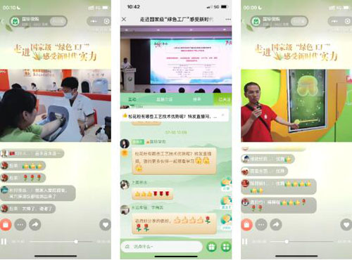 公司三大直播平台全天滚动直播精彩内容,带大家云游生产基地,让更多人了解新时代健康产业园这座国家级“绿色工厂”。