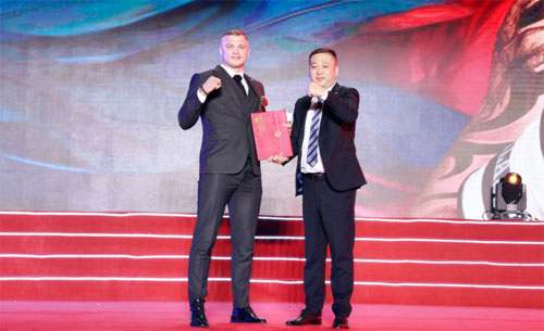 谢尔盖•马斯洛博耶夫出生于1987年5月,是一名综合格斗家、拳击手和跆拳道选手,2015年荣获欧洲武术联盟自由搏击轻重量级世界冠军,2017年荣获专业跆拳道轻重量级世界冠军,2022年荣获“荣耀”跆拳道轻重量级世界冠军。谢尔盖先生拼搏进取、勇于挑战的体育精神以及注重健康、乐观阳光的形象,与和治友德产品承载的健康生活理念相契合,双方因健康事业而结缘。本次大会上,和治友德公司联合创始人兼董事曲峻生先生代表公司向谢尔盖•马斯洛博耶夫颁发和治友德产品形象代言人聘书。