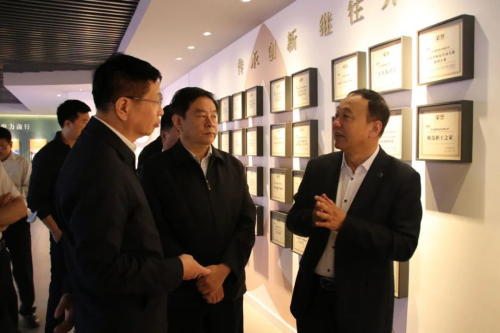 安立佳副主席一行观看了《生命痊力 金诃藏药》宣传片,在俞瑞华副董事长的陪同下详细了解了公司基本概况、生产经营、技改研发、安全生产等情况。随后走进智能立体库查看了智能仓库运行情况,走进颗粒生产车间,询问药品研发、生产运营情况,实地查看了核心产品安儿宁颗粒现代化生产线。
