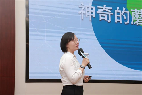 安惠公司市场行政总监、商学院副院长陈丽娟欢迎大家来到美丽的安惠园,她说安惠生物科技园是全国工业旅游示范点、江苏省工业旅游区,在这里可以寻找灵芝之美,发现菌菇之趣,探索科学之谜。她还介绍了此次研学活动的内容,丰富多彩的活动让同学们对此次研学之旅充满了期待。