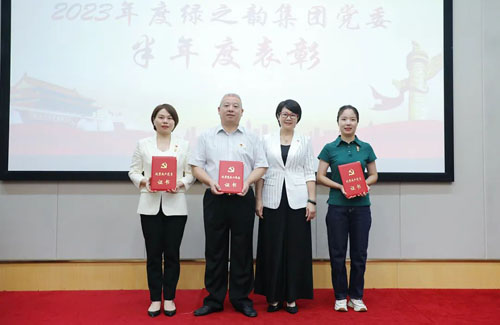 会上,绿之韵集团市场营销中心总经理戴三省、绿之韵集团常务副总经理梅其慧、绿之韵集团运营部执行总经理·国际商学院常务副院长陈敏分别围绕上半年度重点工作、重大项目完成情况和后续发展思路进行汇报,并就下半年重点工作进行了解读和动员。为表彰先进,会议现场还对获得园区“党员微宣讲竞赛一等奖”的优秀党员给予了嘉奖。会议宣读了今年“七一”获得浏阳经开区党工委优秀表彰的先进集体和党员名单:绿之韵公益基金会党支部获评“先进基层党组织”;绿之韵集团党委委员、绿之韵国际大酒店党支部书记胡均安获评“优秀党务工作者”;党员陈建新、杨丹获评“优秀共产党员”荣誉称号。浏阳经开区企业党委委员、绿之韵集团党委书记刘云为获奖组织和个人颁发奖项。