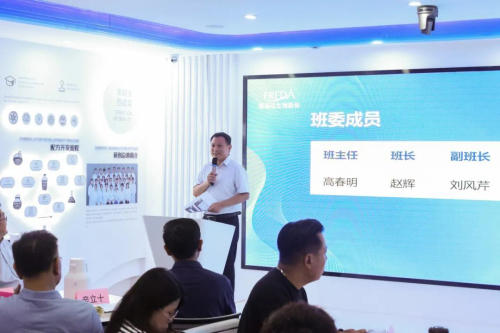 在开班仪式上,班长赵辉为大家公布本次学习过程中的制度。他宣布了班委成员并详细介绍了课程安排、积分规则、积分奖励和学习要求。班主任高春明进行开班致辞,他表示,给人以权利,组织才有权力;给人以空间,组织才有空间;给人以规则,组织才有效率;给人以利益,组织才有利益。德鲁克说管理就是激发人的善意,希望通过学习把每个人的潜力、持续的创新动力开发出来,破解个人和团队存在的问题,共同探索创造更大的价值,助力福瑞达生物股份从美妆行业头部企业发展到顶部企业。