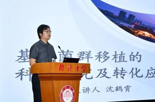 美益添生物公司董事长沈鹤霄作《基于菌群移植的科学研究及转化应用》学术报告,分享了菌群移植技术的科研思路和科研案例,以及菌群移植严格的供体筛选与管理机制。