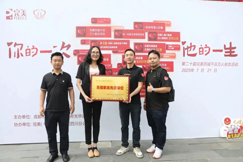 “中国哪里有血荒,哪里就会出现完美献血志愿队,我们的目标是让中国不再有血荒。”完美四川分公司总经理胡瑛介绍道,今年是完美四川分公司第15年组织举办该活动。