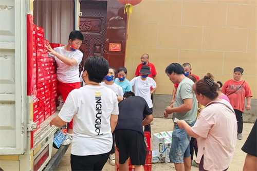 自灾情发生以来,湖南省绿之韵公益基金会高度关注河北涿州等地的受灾情况。在了解灾区重建的需求后,绿之韵公益基金会理事、绿之韵集团副总裁夏运良第一时间召集河北地区的幸福国际家人们,迅速组织筹集援助物资,通过多方调度,及时调配了急需的水、食物、卫生用品、生活用品等价值10万余元的紧缺物资。家人们不惧酷暑,不畏险情,用最短时间将救援物资打包装车,满载物资的6辆大货车从河北保定出发,紧急奔赴灾情形势严峻的河北省涿州市豆庄镇中代屯村和东代屯村等地展开慰问救援工作。