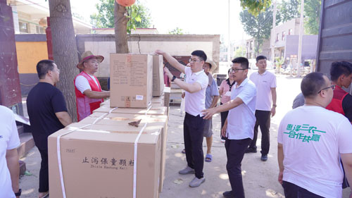 8月13日,金木集团、保定中药制药股份有限公司,携手涞水农商行,为涞水防洪一线群众进行捐赠。工作人员驱车百余里,满载中药产品,到达涞水一线进行慰问。地方政府人员共同参加了捐赠慰问活动。