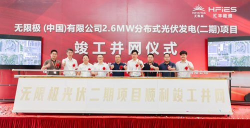 无限极新会生产中心光伏(二期)项目于2023年5月正式启动建设,于2023年8月17日完成整体施工建设。项目由汇丰能源投资有限公司与无限极新会生产中心共同合作建设,项目总投资约1100万元,铺设容量规模2.6MW,占地面积约20000平方米。