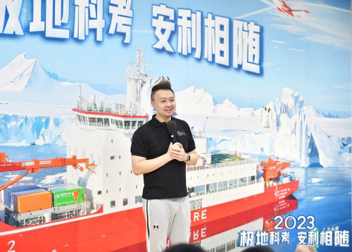 在活动中,安利内蒙古分公司负责人苟宇聪回顾了安利与极地科考21年的合作历程,同时讲解了企业的减碳战略,引导绿色消费理念。