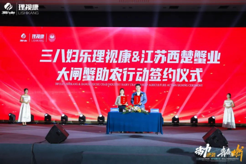 在建设健康中国的同时,三八妇乐理视康也一直积极承担社会责任。本次全国巡讲发布会现场,三八妇乐理视康徐伟明和江苏西楚蟹业董事长杨敏共同上台,签署“大闸蟹助农行动”战略合作。这意味着双方合作层次的全面提升和深化,充分发挥各自资源和能力优势,围绕产业链上下游需求,赋能产业良性发展,构建共建合作新模式,探索行业助农发展潜力,持续创造良好经济效益和社会效益。