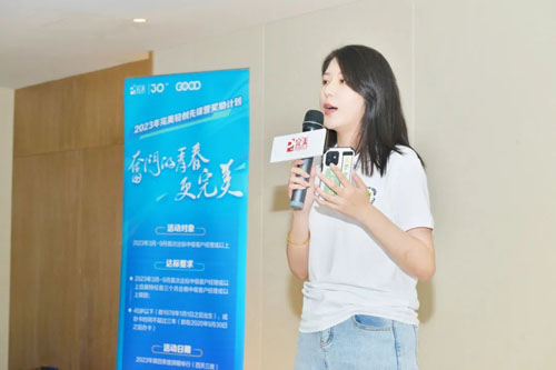 完美山东分公司陈艳主任讲解了完美轻创先锋营的活动,鼓励大家重视自己的成长,在轻创营中发挥自己的优势和才能。