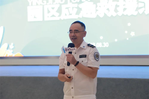 公司安全救援相关人员通过现场实践模拟了人员落水后的救援流程,介绍了如意湖应急处理设施的使用方式方法。