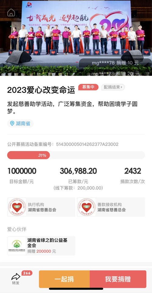 绿之韵公益基金会携手省慈善总会、芒果公益上线“2023爱心改变命运”网络筹款募捐项目