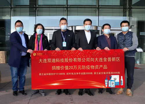 年终岁尾,新型冠状病毒肺炎疫情再次袭击大连,牵动着全市人民的心,也牵动全中国的关注。作为家乡的民族企业,双迪股份第一时间筹集援助物资——12月24日,价值20万元的霸王鲨抑菌防护卡、植物珍派即时免洗净手凝露、霸王鲨含氯消毒液等防疫物资已送达金普新区,新区发改局和商务局相关领导接受了捐赠,并表示感谢。