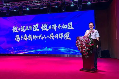 分公司员工张赫为大家介绍了新时优品特许加盟模式以及公司未来的发展举措,并结合公司发布的利好消息鼓励大家继续深耕市场,推动大健康事业发展。