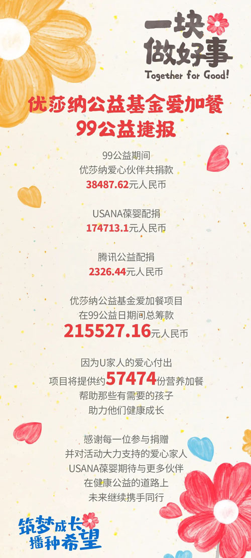 - USANA葆婴关爱儿童 捐超147万份营养加餐
