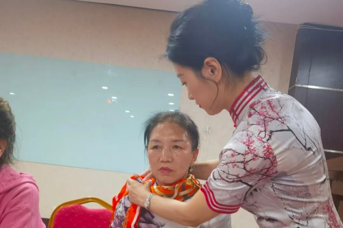随后,王娇带领参会者一起动手解锁了新时优品丝巾搭配技巧。活动最后,参会者在愉快的氛围下预定了丹凤水光瑧双肽饮品,表达了对产品的认可。