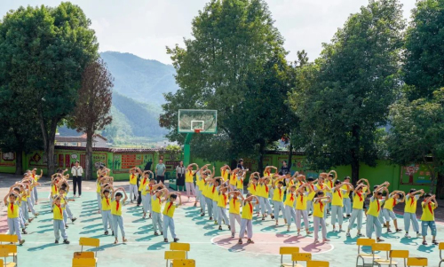 捐赠仪式上,孟垅小学的全体的同学为了表达感恩之情,还精心准备了武术体操表演。跟着广播里乐曲的节奏,同学们整齐划一的动作,赢得了在场嘉宾的称赞。