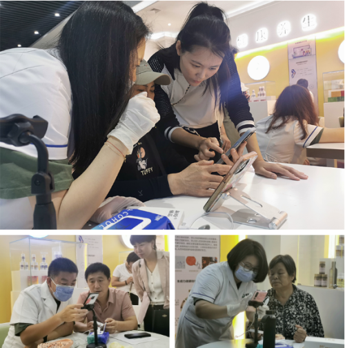 公司为参加活动的新时代人设立了健康服务设备体验区,为大家进行了智能耳穴仪的健康监测服务,现场好评不断。