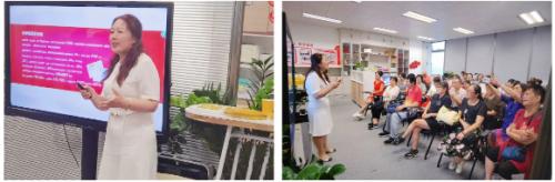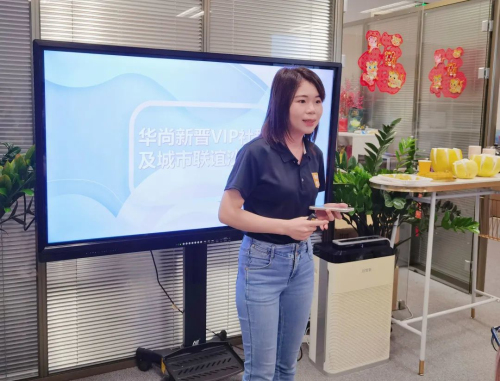分公司员工黄康容详细介绍了华尚新晋VIP社群以及城市联谊沙龙,分享了如何把新客户进行留存和转化的方法。