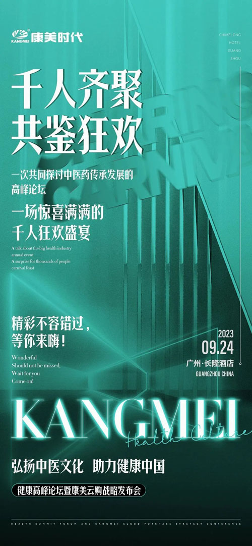 为响应《健康中国2030发展战略》的号召,积极推动“每个人都是自己健康第一责任人”的理念,康美时代将于2023年9月24日举办一场品牌盛会——以“弘扬中医文化,助力健康中国”为主题的「健康高峰论坛暨康美云购战略发布会」!