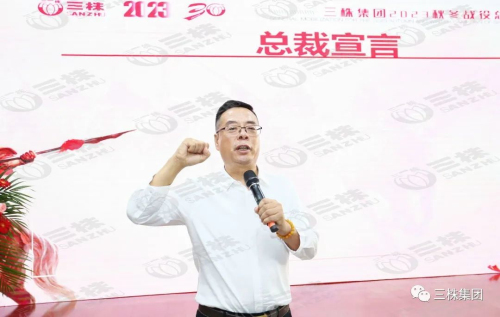 张宏亮独立董事发表热情洋溢的致词,代表董事会对李永顺总裁带领的新领导集体,及三株集团近期取得的新发展,给予充分肯定和支持;并勉励大家再接再厉,再创佳绩。