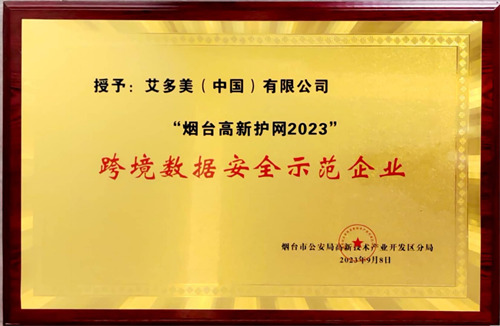 近日,由烟台高新公安组织的“烟台高新护网2023”网络安全培训在烟台市高新区进行,艾多美(中国)有限公司被授予“跨境数据安全示范企业”荣誉称号。这是艾多美荣获“跨境电商最佳信息化创新奖”之后,又一次获得信息化方面的殊荣。