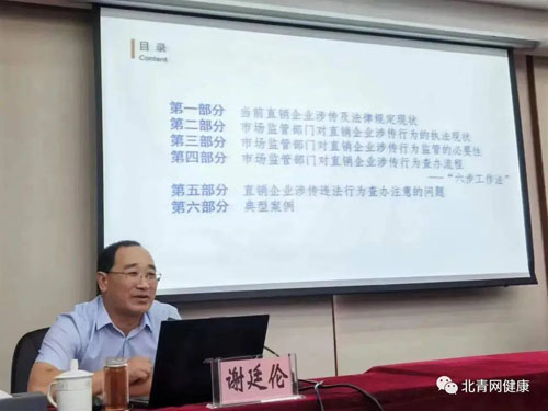 受国家市场监管总局价监竞争局的邀请,山东省临沂市蒙阴县市场监管局谢廷伦同志主讲《直销企业涉传违法行为查办方法及案例讲解》。
