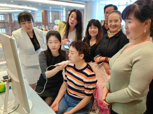 活动开始前,国珍健康研究院产品经理刘斯月运用智能健康镜及皮肤分析仪为大家开展皮肤分析测评,帮助大家精准了解自己的肌肤状态。分公司总经理陈明为大家送上了精美的伴手礼,寓意阖家团圆,健康快乐。