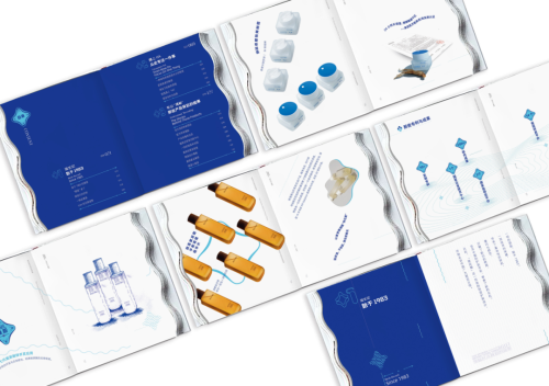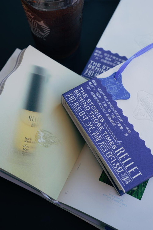 颐莲专注于「玻尿酸保湿修护」的理念同样与至善至柔的“水”相契合,将“莲”与“水”的意象相结合,便形成了品牌团队的设计创意概念——清晰脱俗的“莲”、涟漪波纹的“水”。以品牌ICON “HA”作为设计串联元素,结合一抹专属品牌蓝,搭配水纹涟漪的波纹异型裁切,在封套与书口的位置立体呈现,生动形象地表达品牌文化。
