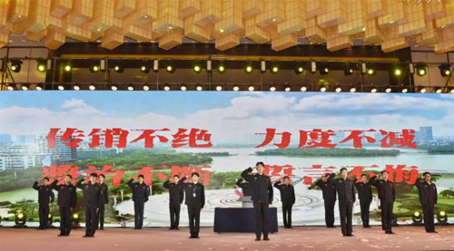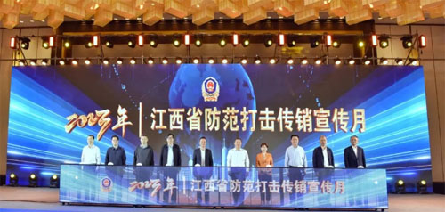 市场监管部门及公安机关部分执法人员现场举行打击传销集体宣誓活动,向全社会传递政府部门打击传销的决心和信心。江西省防范打击传销宣传月活动同步启动。