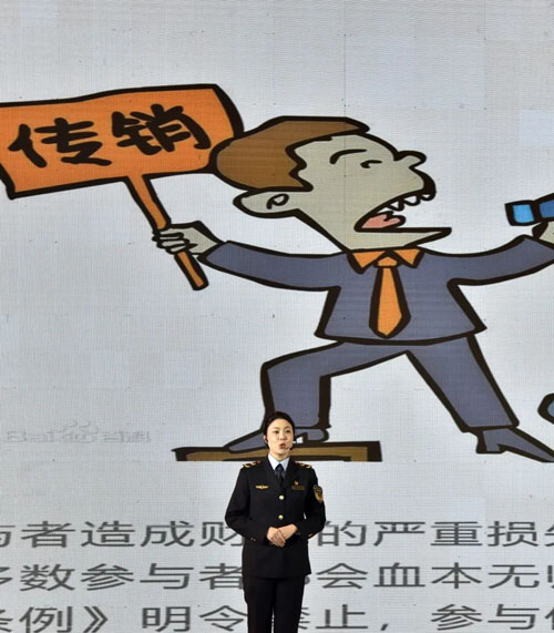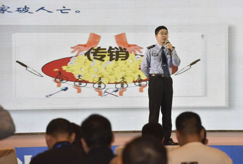 南昌市公安局红谷滩分局干警以“打击网络传销、促进社会稳定”为题,从网络传销案侦办角度,讲解打防网络传销对策。