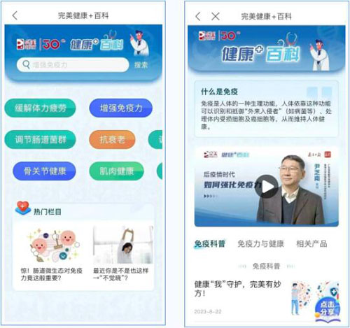 目前,“完美健康+百科”已上线调节肠道菌群、增强免疫力、缓解体力疲劳、抗氧化、骨关节健康等多个词条,快去看看吧!
