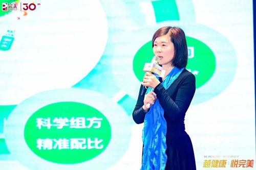 完美公司业务中心业务推广部朱毅, 对新品完美牌桑叶沙棘蛋白肽固体饮料进行了讲解,完美阻糖神器,解决吃货的烦恼,即将上市,敬请期待!