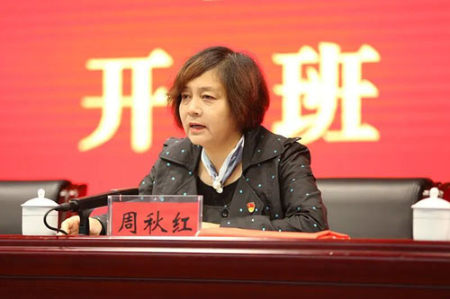 ▲河南大别山干部学院工会主席周秋红致欢迎辞