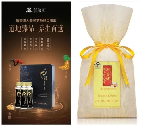 康美牌“人参灵芝鱼鳔口服液”“菊花胖大海茶”