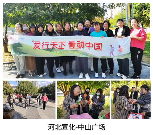 10月14日,60多名荣格家人分别在宣人民公园、宣化中山广场,开展健骨行动,传递骨骼健康知识。
