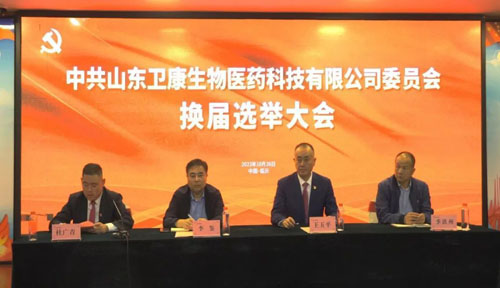 10月26日,在一曲高昂奋进的国歌合唱中,中共山东卫康生物医药科技有限公司委员会换届选举大会隆重开幕。