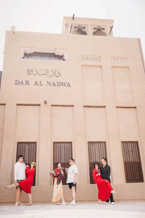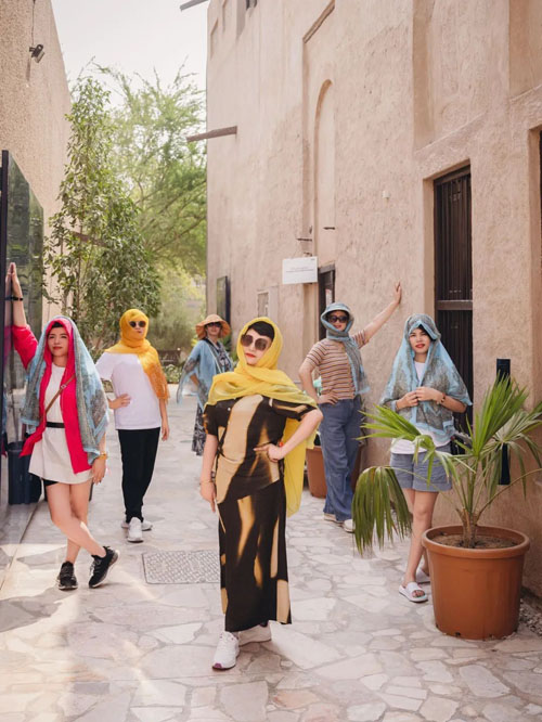 白天的迪拜纸醉金迷。拥有近100年历史的黄金市集是迪拜繁忙的传统市集之一,市集内窄长的小巷如迷宫般交叠,两旁的橱窗陈列着各样黄金珠宝,琳琅满目间颇有异域风情。伊朗小镇是迪拜最古老的遗址之一,是海湾阿拉伯沿岸仅存的风塔建筑群。绿之韵家人们留恋徜徉于小镇,成为了小镇一道亮丽的风景线。