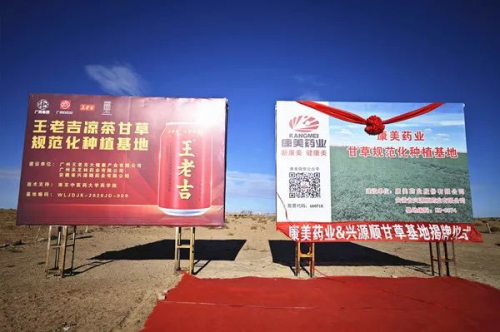 康美药业甘草规范化种植基地由康美药业、王老吉大健康产业有限公司以及安徽省兴源顺药业有限公司共建、共享,基地分繁育区和种植区,种植模式为仿野生种植,总面积达4000余亩。此次顺利通过审查并挂牌,标志着三方首次正式达成中药材规范化种植基地项目合作。