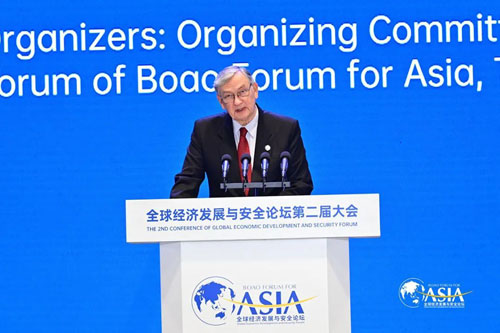 第十四届全国人大常委会副委员长郑建邦代表中国政府在开幕大会上致辞。郑建邦说,当前世界进入新的动荡变革期,正在经历大调整、大分化、大重组,安全问题的外延不断拓展,同发展问题的联系更加紧密。习近平主席先后提出全球发展倡议和全球安全倡议,在国际社会引起积极反响。中方主张进一步落实全球发展倡议和全球安全倡议,共同促进全球发展与安全,共同树牢合作共赢理念。他指出,中国反对将发展议题政治化、安全问题扩大化,希望切实探索合作共赢的路径,推动发展问题重回国际议程核心,加快落实联合国2030年可持续发展议程。反对“脱钩断链”,希望建设开放型世界经济,以正当竞争促进全球交流合作,使科技创新为世界共同发展与安全赋能,为各国人民最大福祉谋利益;完善保障合作共赢机制,构建团结、平等、均衡、普惠的全球发展伙伴关系,推动形成各国政府和国际组织协同、非政府组织参与的安全治理格局。中国将坚持安全和发展并重,统筹应对传统与非传统领域的安全威胁,在努力维护自身发展与安全的同时,积极致力于促进世界的共同发展与安全,不断推动构建人类命运共同体。