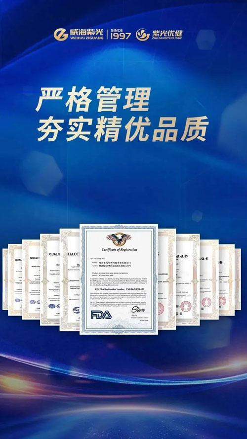 作为中国营养保健食品专业服务商,威海紫光一直把产品质量作为生存和发展的基本前提,贯彻“零缺陷,零容忍”的产品质量标准及流程品控理念,从原料入库到成品出厂,严格每一步检验检测工序,夯实品质管理的每一个细节。全息图像识别技术和红外扫描技术贯穿生产全链条,快速甄别和检测,实时进行数据传输。同时,高效的追溯系统能确保食品生产和质检信息不可篡改,保障消费者获取真实可靠的食品信息,全面加强食品安全管理。