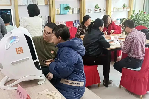 培训结束后,各地健康管理服务中心组织开展沙龙体验活动。健康顾问们通过脉象信息采集分析仪、舌象分析仪、智能耳穴仪等健康设备,结合所学健康管理专业知识、中医诊断原理和大数据、云计算技术,独立对健康报告进行分析评估,并给出详细的健康管理建议和指导。