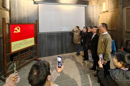 党员代表重温入党誓词并分享感悟。他们表示要将红色血脉继承下去,在自己的岗位上艰苦奋斗,砥砺前行,为祖国的繁荣昌盛而贡献力量。