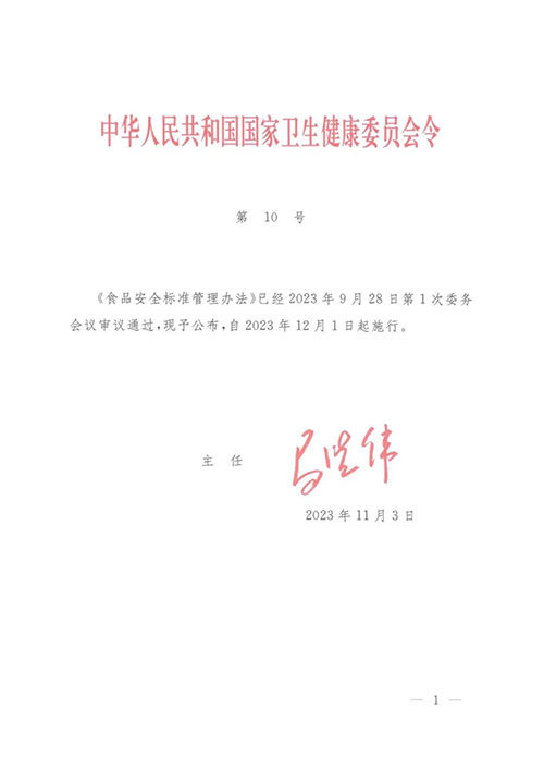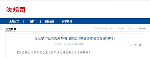 近日,国家卫生健康委公布了《食品安全标准管理办法》(以下简称《办法》),该《办法》自2023年12月1日起施行。